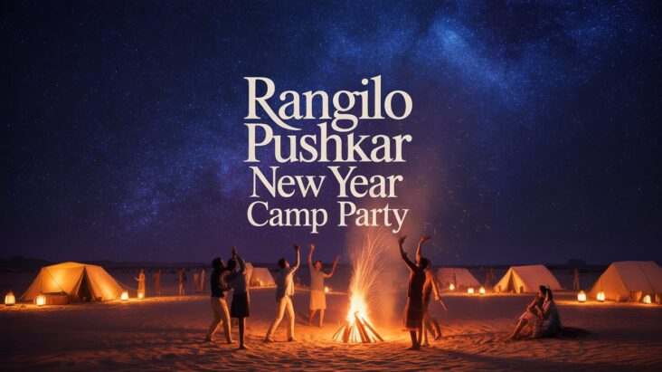 A glimpse of the visual mood and style created for Rangilo Pushkar New Year Camp Party 2026. Final on-ground tents and décor may vary, but the focus stays on cinematic desert frames, warm lights and starry skies.