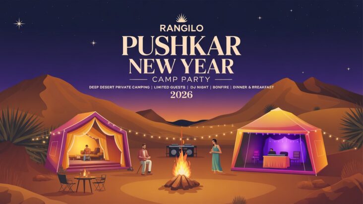 Rangilo Pushkar New Year Party 2026 brings luxury desert camping, gourmet food, calm vibes, and a private guest list—perfect for solo explorers, couples, and groups.